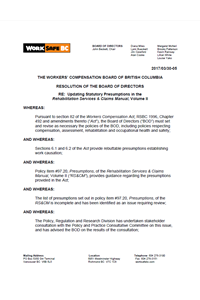 BOD Decision - 2017/03/30-05 - Updating Statutory Presumptions in the Rehabilitation Services & Claims Manual, Volume II