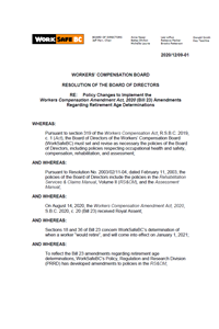 BOD Decision - 2020/12/09-01 – Policy Changes to Implement the Workers Compensation Amendment Act, 2020 (Bill 23) Amendments Regarding Retirement Age Determinations