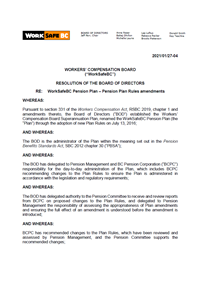 BOD Decision - 2021/01/27-04 - WorkSafeBC Pension Plan – Pension Plan Rules amendments