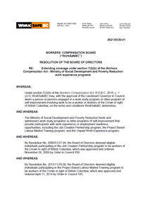 BOD Decision - 2021/03/30-01 – Extending coverage under section 7(2)(b) of the Workers Compensation Act - Ministry of Social Development and Poverty Reduction work experience programs