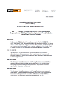 BOD Decision - 2021/03/30-02 – Extending coverage under section 7(2)(b) of the Workers Compensation Act - Ministry of Social Development and Poverty Reduction Research and Innovation program