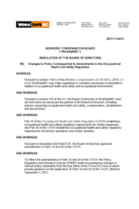 BOD Decision — 2021/11/24-01 — Changes to Policy Consequential to Amendments to the Occupational Health and Safety Regulation