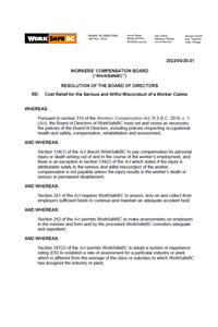 On May 25, 2022, WorkSafeBC’s Board of Directors approved changes to policy to relieve all costs associated with the serious and wilful misconduct of the worker.