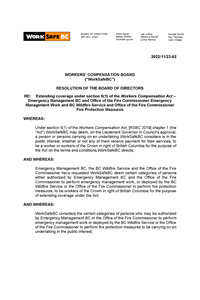 BOD Decision — 2022/11/23-02 — Extending coverage under section 5(1) of the Workers Compensation Act — Emergency Management BC and Office of the Fire Commissioner Emergency Management Work and BC Wildfire Service and Office of the Fire Commissioner Fire Protection Measures