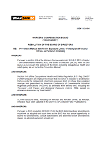 At its November 2024 meeting, WorkSafeBC’s Board of Directors (BOD) approved the adoption of the new American Conference of Governmental Industrial Hygienists Threshold Limit Value (ACGIH TLV) of 0.0001 mg/m3 (8-hour exposure limit) for fentanyl and fentanyl citrate, as fentanyl, inhalable.