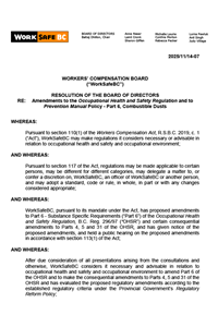 BOD Decision — 2025/11/14-07 — Amendments to the Occupational Health and Safety Regulation and the Prevention Manual — Part 6, Combustible Dusts