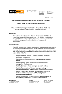 BOD Decision – 2008/09/10-01 – Amendments to Requirements of the Occupational Health and Safety Regulation