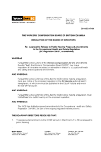 BOD Decision – 2010/03/17-04 – Approval to Release to Public Hearing Proposed Amendments to the OHS Regulation