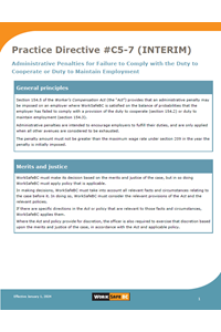 This practice directive provides guidance on imposing administrative penalties where WorkSafeBC concludes an employer has failed to comply with the duty to cooperate or the duty to maintain employment.