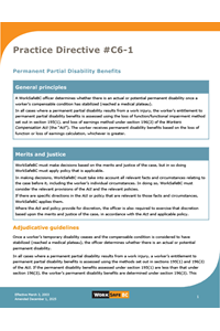 This practice directive provides guidance to WorkSafeBC officers in determining whether a worker has an actual or potential permanent disability.