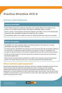 Compensation Practice Directive: #C5-5 — Selective Light Employment