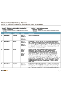 Public Consultation Submission Summary — Mental Disorder Policy Review
