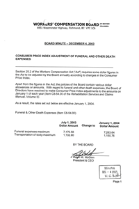 Consumer Price Index adjustment - December 4, 2003 - Funeral and Other Death Expenses