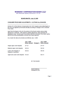 Consumer Price Index adjustment – July 2005 – Clothing Allowances
