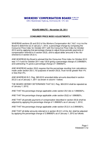 Consumer Price Index adjustment - November 28, 2011 - Periodic Payments and Dollar Amounts in the Workers Compensation Act