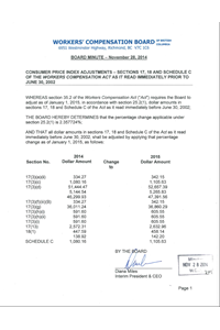 Section 35.2 of the Act requires WorkSafeBC to adjust dollar amounts in sections 17, 18 & schedule C of the Act as it read immediately prior to June 30, 2002. These adjustments are made annually, effective January 1. These adjustments are authorized by a Board Minute.