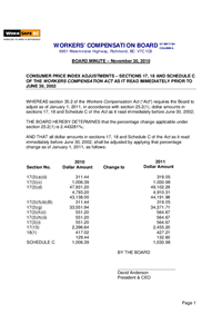 Consumer Price Index adjustment - November 30, 2010 - Sections 17, 18 & Schedule C of the Act as it Read Immediately Prior to June 30, 2002
