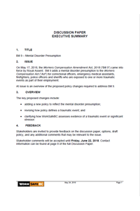 Discussion Paper: Bill 9 – Mental Disorder Presumption