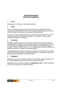 Discussion Paper - Compensation of Principals – Shareholder Dividends Consultation