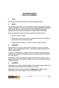 Discussion Paper - Determination of Retirement Date for Permanent Disability Awards Consultation