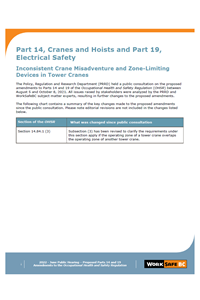 Our Policy, Regulation and Research Department is requesting feedback on proposed amendments to Parts 14 and 19, Inconsistent Crane Misadventure and Zone-Limiting Devices in Tower Cranes, of the Occupational Health and Safety Regulation.