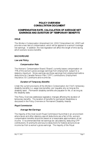 Discussion Paper - Policy frameworks arising from the Workers Compensation Amendment Act, 2002