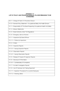 As of August 30, 2002, 209 policies from the Policy and Procedure Manual were consolidated and/or retired. There were therefore 63 polices from the Policy and Procedure Manual and the 33 prevention decisions from the Reporter remaining to be considered.