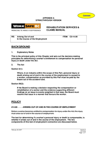 Appendix A — Proposed policies - Item # C3-14.00 Arising Out of and In the Course of the Employment