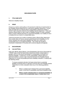 The Policy and Research Division developed a discussion paper on "Referral to Disability Awards" for consideration by stakeholders.