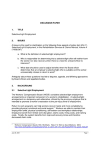 The Policy and Research Division developed a discussion paper on Selective/Light Employment for consideration by stakeholders.