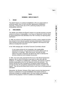 • guidelines with respect to the role of vocational rehabilitation in achieving employment and employability outcomes (Tab A);
