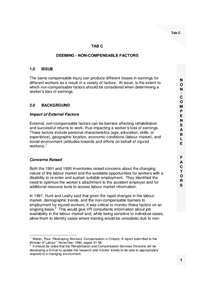 - the extent to which non-compensable factors should be considered when determining a loss of earnings (Tab C); and
