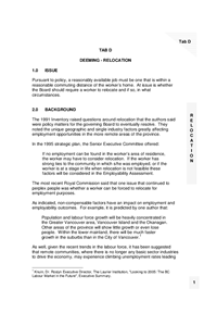 This discussion paper provided an overview of the consultation process and the format used. This was followed by a discussion on the main issue of adjudication guidelines for the assessment of employability. This issue addressed concerns about the Board's definition of "suitable" and "reasonably available". This issue also included consideration of: