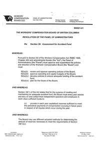 In determining assessment rates every year, the Board must collect sufficient funds to establish capitalized reserves sufficient to meet all future payments of compensation on injuries occurring in the current year. The Board can use various actuarial methods to estimate the amount of these reserves. One of these methods is the establishment of "average actuarial abstracts", which might appear to establish reserves on a per claim basis. The Panel passed a resolution which says none of the information produced for the purpose of calculating the reserves, including any figures calculated as average actuarial abstracts, will be considered relevant to or used in any way in the adjudication of individual claims.