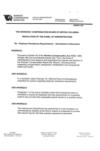 In February 1999 the Panel passed a resolution that required all employers who pay their assessments quarterly to also submit their payroll information quarterly. Subsequently the Assessment Department advised that it was not necessary nor administratively feasible to require all these employers to submit their payroll reports quarterly. Thus, the Panel amended the resolution to say employers may be required to provide their payroll information with their quarterly payments.