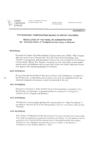 The Panel of Administrators approved a resolution which: • Removes the firefighter heart presumption from Schedule B of the Workers Compensation Act; • Approves a policy on firefighters and heart injury which recognizes the unique risks faced by firefighters and clarifies when the Board will normally conclude that a firefighter's heart injury is work-related; and • Approves the addition of heart disease to the list of occupational diseases recognized by regulation of general application. Once the changes are in effect, firefighters will continue to receive compensation for heart-related claims where the Board determines that they are work-related. Claims will be adjudicated on their individual merits as they are for the vast majority of claims for injuries or occupational diseases. In its resolution, the Panel also directed that expedited training take place among Board officers on the new policy and that the Board facilitate further research, to be undertaken over the next five-to-ten years, on the matter of heart injury and disease among firefighters and other emergency workers. The Panel based its decision on the medical and scientific evidence received from the experts retained by the Board and from stakeholders. The changes took effect September 5, 2000 (90 days after deposit of a regulation with the Registrar of Regulations).