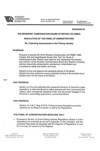 The Panel approved an amendment to the Fishing Industry Regulations to broaden the base of assessments in the fish harvesting industry. The purpose of the amendment is to make assessments in the fish harvesting industry more equitable by distributing the cost of fishers’ compensation coverage among a broader range of fishing industry participants. As of January 2001 when the amendment took effect, the Board will collect assessments on fish bought by, or sold to people and organizations that are not registered to buy fish commercially in British Columbia. More specifically, the Board will collect assessments from persons or organizations that transmit payments to BC commercial fishers. The Board’s Administration is developing policy guidelines to help identify specific persons and groups in the fishing industry that the policy change will affect.