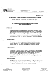 The Panel of Administrators approved the consolidation of the Agricultural Operations policies from the Prevention Division Policy and Procedure Manual into the new Prevention Manual. The affected policies are Policies No. 70.0.0 – 70.156, except Policies No. 70.0.2.04, 70.0.4.02 and 70.0.6.02 which are still being worked on by the Policy and Regulation Development Bureau. The effective date for the consolidated policies is December 1, 2000. On that date the consolidated policies became "published policy" and Policies No. 70.0.0 – 70.156 (except Policies No. 70.0.2.04, 70.0.4.02 and 70.0.6.02) ceased to be "published policy". The consolidated policies appear in the new Manual format. They continue the substantive requirements of the Policy and Procedure Manual policies, as those requirements existed prior to December 1, 2000, with any wording changes necessary to reflect legislative and regulatory changes since the Policy and Procedure Manual policies were issued. The consolidation of the Agricultural Operations policies is part of a larger project that will eventually result in all prevention policies being consolidated into the new Prevention Manual or repealed or retired as appropriate.