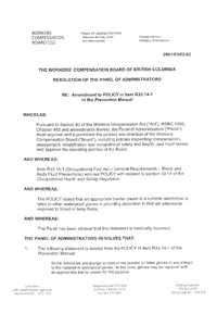 Item R33.14-1 of the Prevention Manual sets out the precautions to be followed by a first aid attendant to prevent contact with blood or body fluids when treating a worker. The Panel deleted the reference to barrier cream being a suitable alternative to latex or other waterproof gloves in such cases from this Item. Barrier cream does not provide the necessary protection. Item R33.14-1 was one of the consolidated Occupational First Aid policies approved by the Panel effective October 1, 2000.