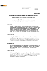 POA Decision – 2002/06/18-02 – Policies in Regard to the Workers Compensation Amendment Act, 2002