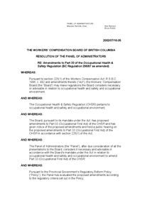 POA Decision – 2002/07/16-05 – Amendments to Part 33 of the Occupational Health & Safety Regulation