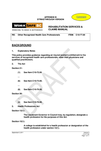 - Appendix B: Item# C10-77.00 - Other Recognized Health Care Professionals