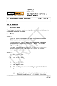 - Appendix D: Item# C10-76.00 - Physicians and Qualified Practitioners