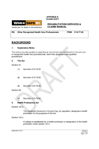 Appendix D: Item# C10-77.00 - Other Recognized Health Care Professionals