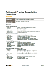 Policy and Practice Consultative Committee Meeting Minutes December 20, 2018