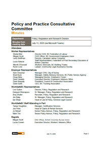 Policy and Practice Consultative Committee Meeting Minutes July 13, 2020