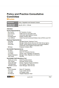 Policy and Practice Consultative Committee Meeting Minutes July 26, 2016