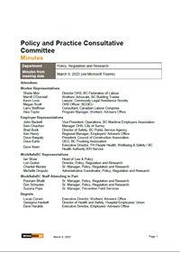 Policy and Practice Consultative Committee Meeting Minutes March 9, 2022