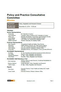 Policy and Practice Consultative Committee Meeting Minutes November 25, 2019