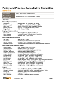 Policy and Practice Consultative Committee Meeting Minutes November 28, 2022